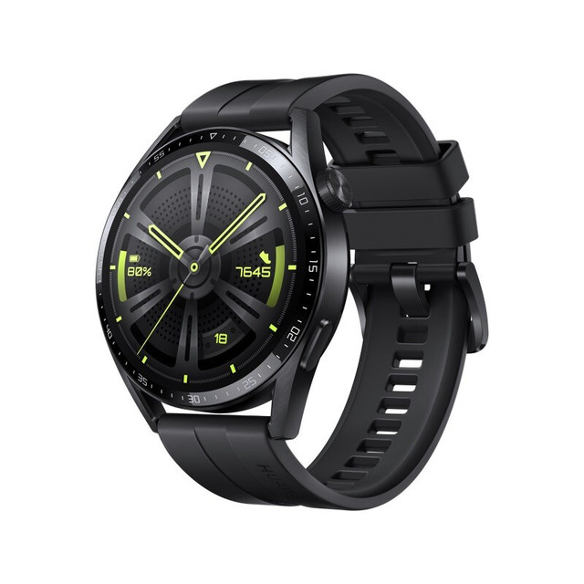 HUAWEI 华为 WATCH GT3 智能手表 46mm 黑色精钢表壳 活力黑硅胶表带(北斗、血压、GPS、血氧、心率)