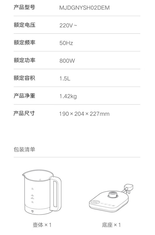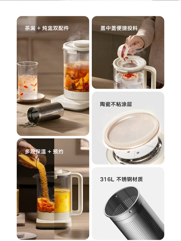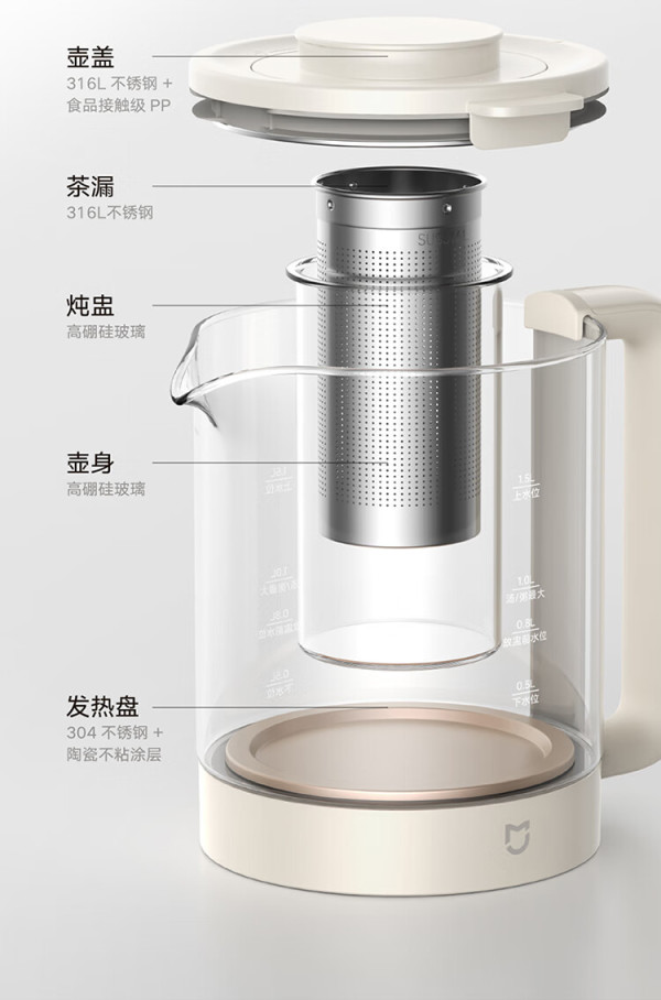 MIJIA 米家 小米养生壶烧水壶带炖盅+316L滤网 1.5L烧水壶S2 S2 1.5L