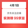 4月1日 京东关注店铺领京豆实测领99京豆 -