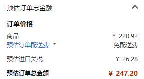 亚马逊海外购目前售价73.64元,prime会员满200元免运费,下单3个实付220.92元,还需要税费26.28元,3个到手约合250元,折合每个83.33元,拼单购买好价,喜欢的值友可以入手了~
